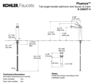 【格蘭登】美國 KOHLER Fluence 檯面單槍加高龍頭 K-33822T-4 限時優惠~2026/05/31