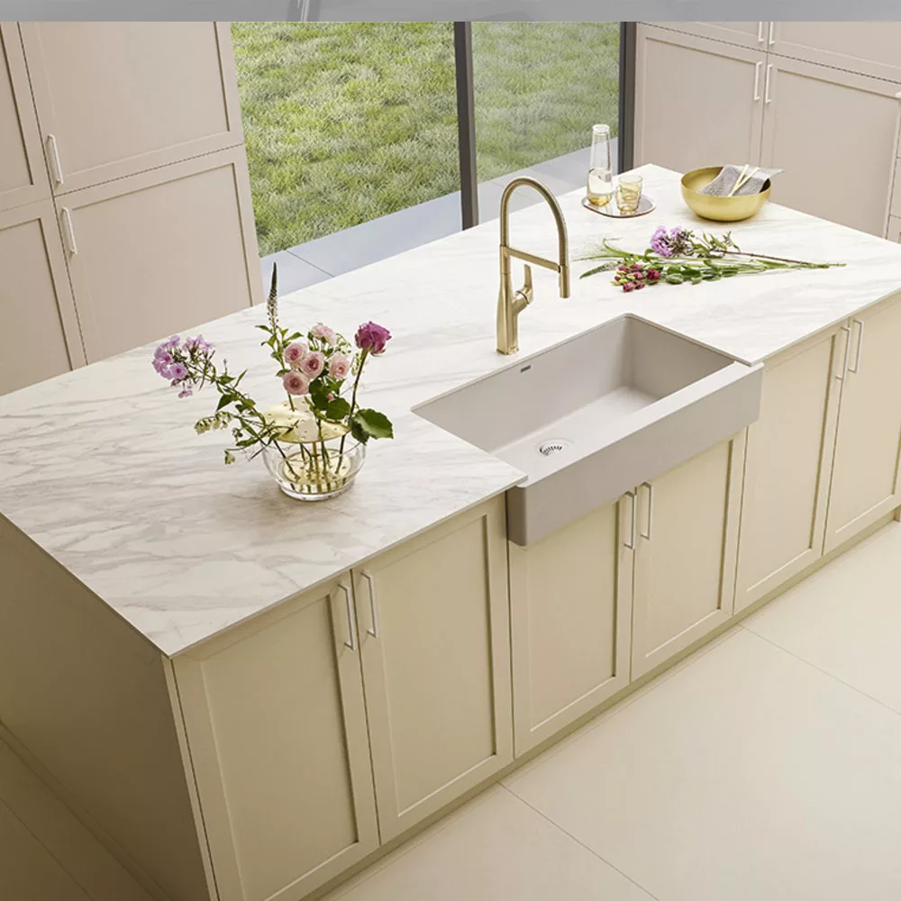 相較於其他彩色合成材料的水槽 花崗岩SILGRANIT™PuraDur™II水槽 表面易於清潔整理更持久耐用