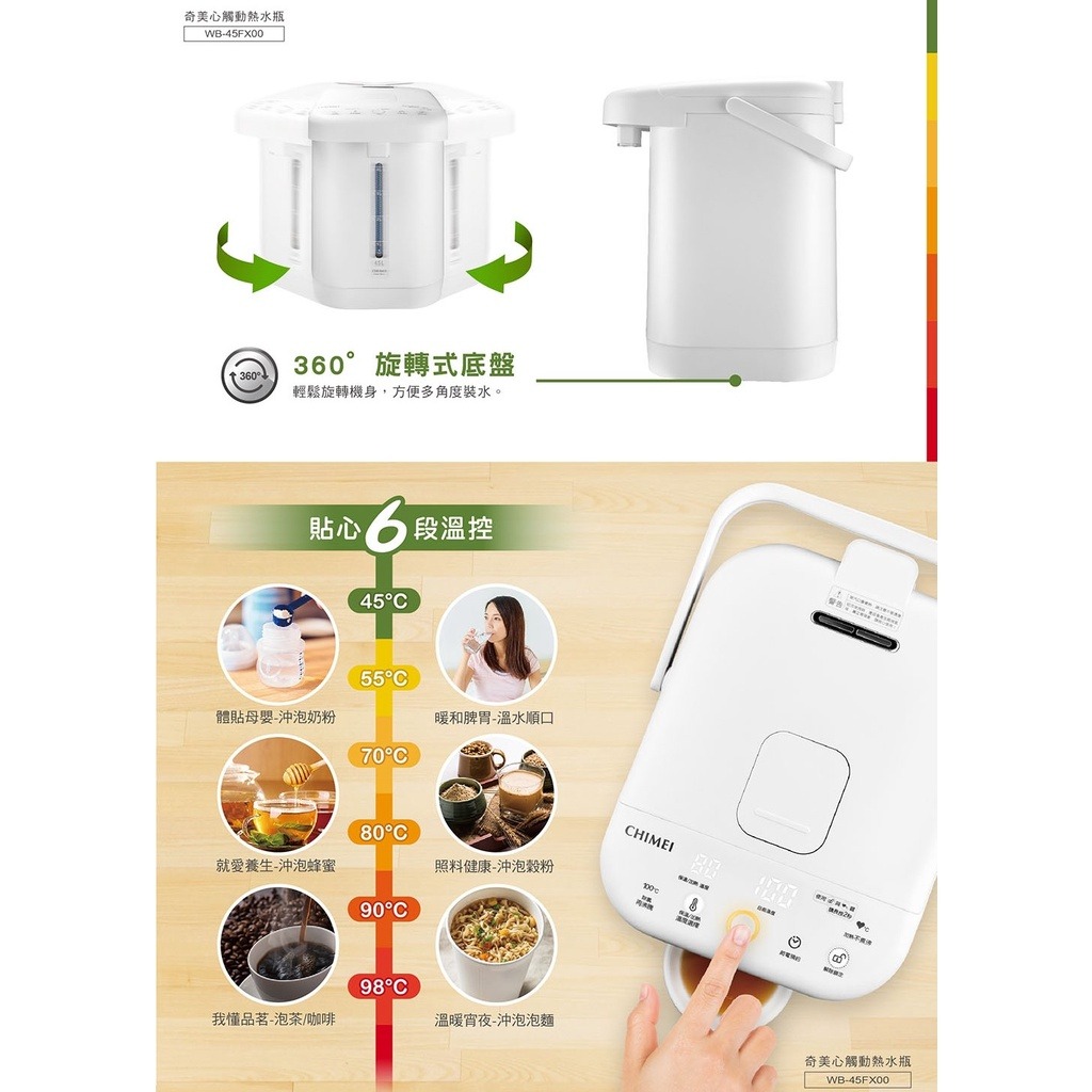 ● 貼心6段溫控:45℃/55℃/70℃/80℃/90℃/98℃。