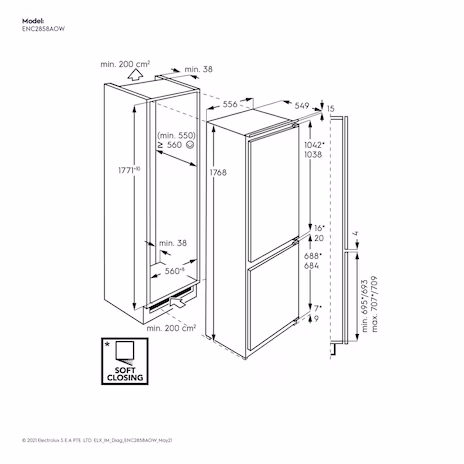 【格蘭登】瑞典 Electrolux 伊萊克斯 UltimateTaste 300 嵌入式電冰箱 ENC2858AOW 停售