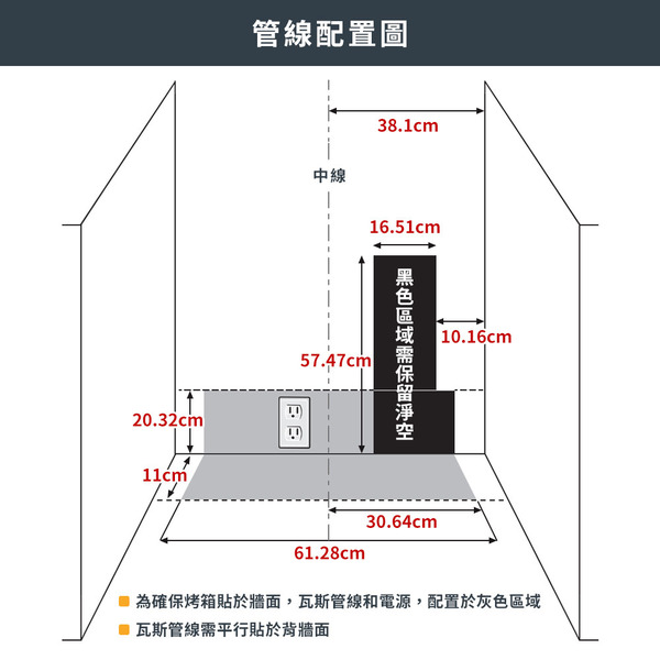 | 安裝預留尺寸 | 櫃體寬度 76.2 公分 櫃體深度 63.5 公分 (切齊機身) 檯面高度 90~92 公分 |