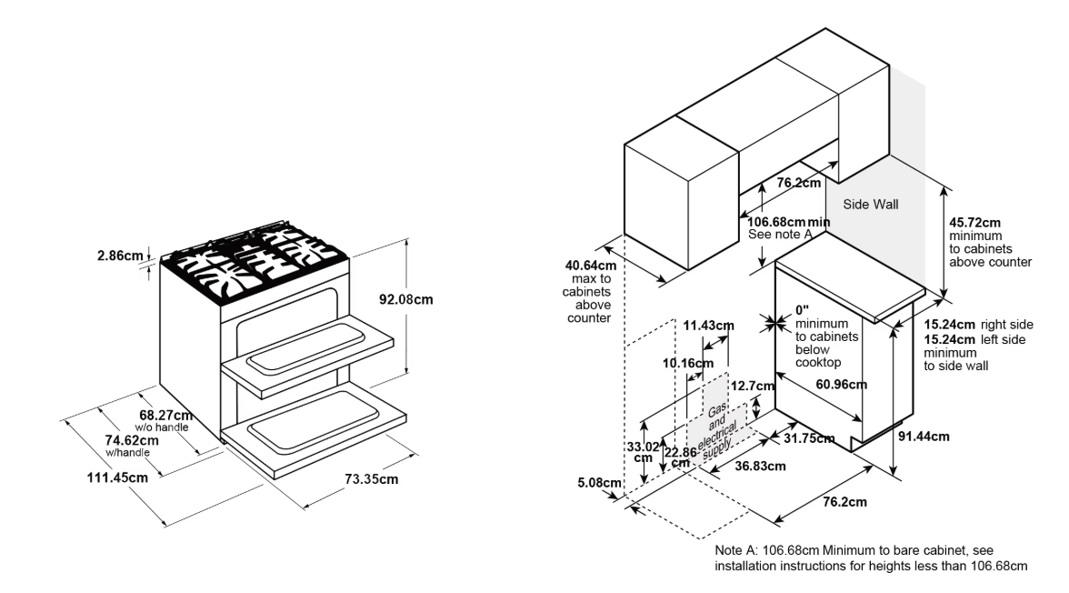 | 烤箱內部尺寸(寬 x 高 x 深) | 上方烤箱 61 cm x 23.2 cm x 48.6cm