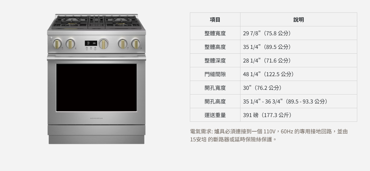 | 火力配置 | 左前爐頭:21,000 BTU → 強火爐頭,適合爆炒、快煎等高溫料理。 |