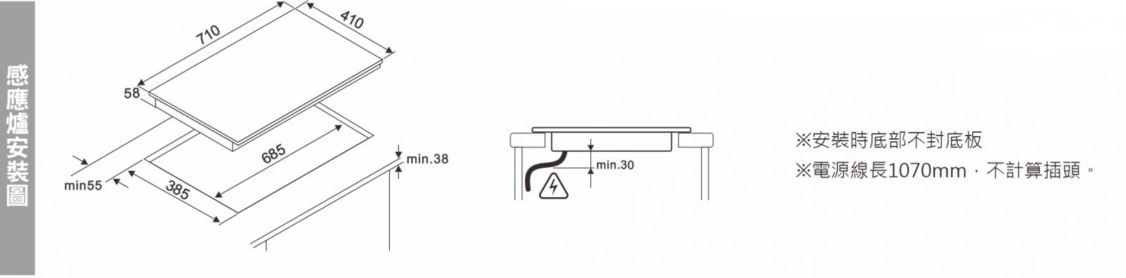 - 挖孔尺寸(寬x深) W685xD385 mm