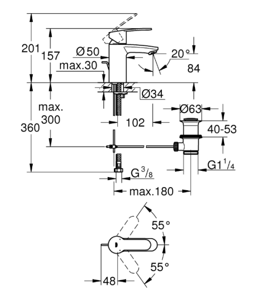 搭載GROHE獨家專利:SilkMove®絲滑柔順操控技術(德製陶瓷軸心)、StarLight®星閃電鍍技術、QuickFix®快速安裝技術。