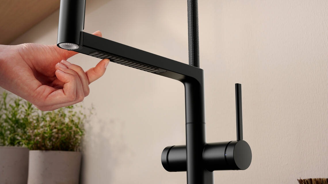 - 可鎖定式前置淋浴噴頭,按下噴頭切換開關即可切換噴頭位置,關閉把手後噴頭會自動切換。