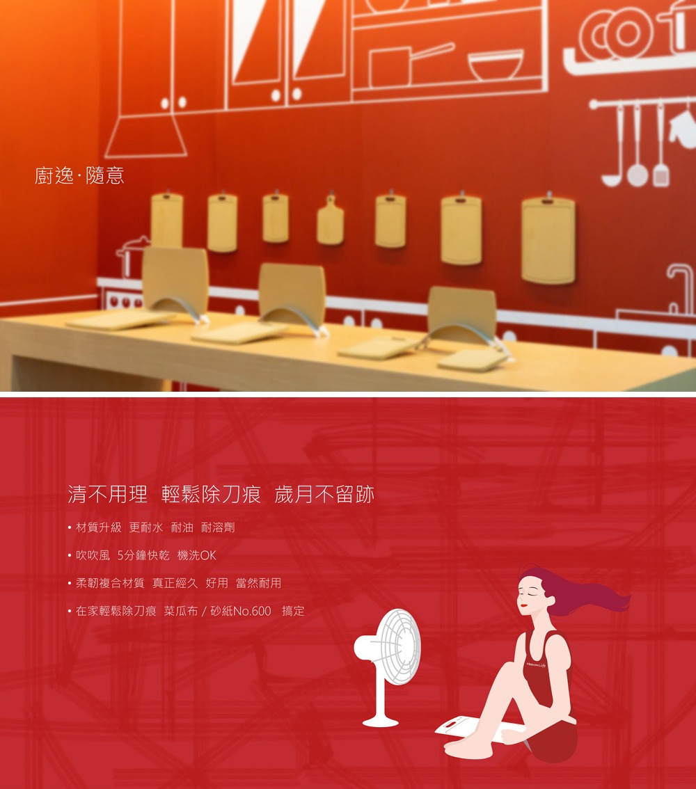 雙面彈性材質不傷刀,掉落不碎裂,有效分散刀具作用力。
