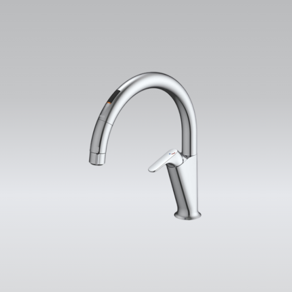 不需觸碰,只要將手伸向感測器即可出水/止水,具備業界首創能輕鬆清潔的底座,進一步追求廚房的簡潔、乾淨。