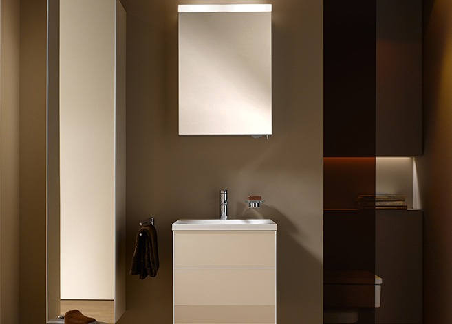 Royal Reflex.2鏡櫃以先進的LED光線技術與特殊的設計,細膩地為居家氛圍追求更完美的表現。鏡櫃兩側、上方與底部的暖、白光帶照明選擇,支援鏡櫃開啟和關閉時的完美光源,配置於鏡櫃底部的旋轉調光器,可自由切換三種不同光源模式。