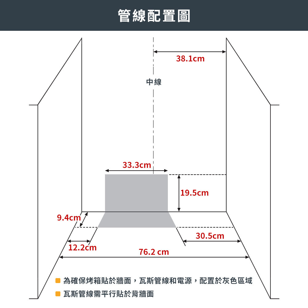 | 安裝預留尺寸 | 櫃體寬度 76.3 公分 櫃體深度 63.5 公分 (切齊機身) 63.5~65 公分 (標準美式深度) 67 公分 (切齊烤箱門) 68.2 公分 (切齊前端上方面板) 檯面高度 90~95 公分走道預留61公分 |
