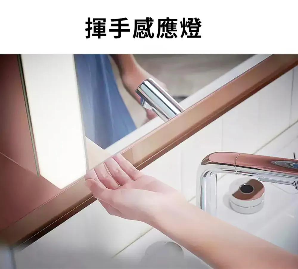 - 智慧揮手感應: 隱藏式感應設計,揮手即控鏡燈與除霧,不留指紋更乾淨。