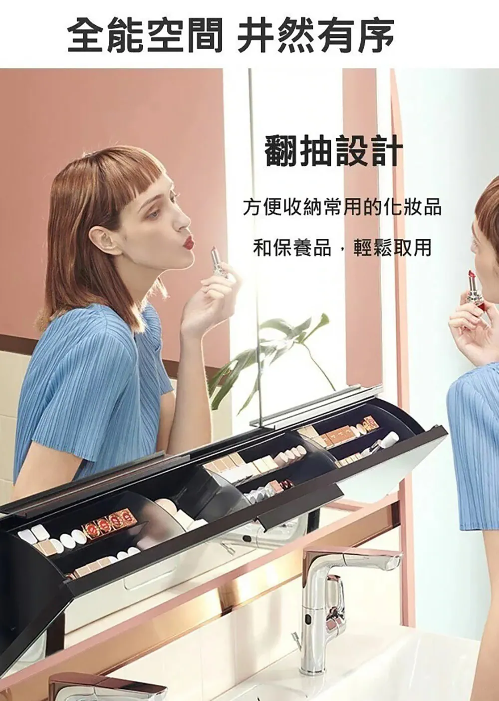 - 獨家翻轉抽屜: 常用保養品「免開鏡門」隨手即取,收納效率加倍。