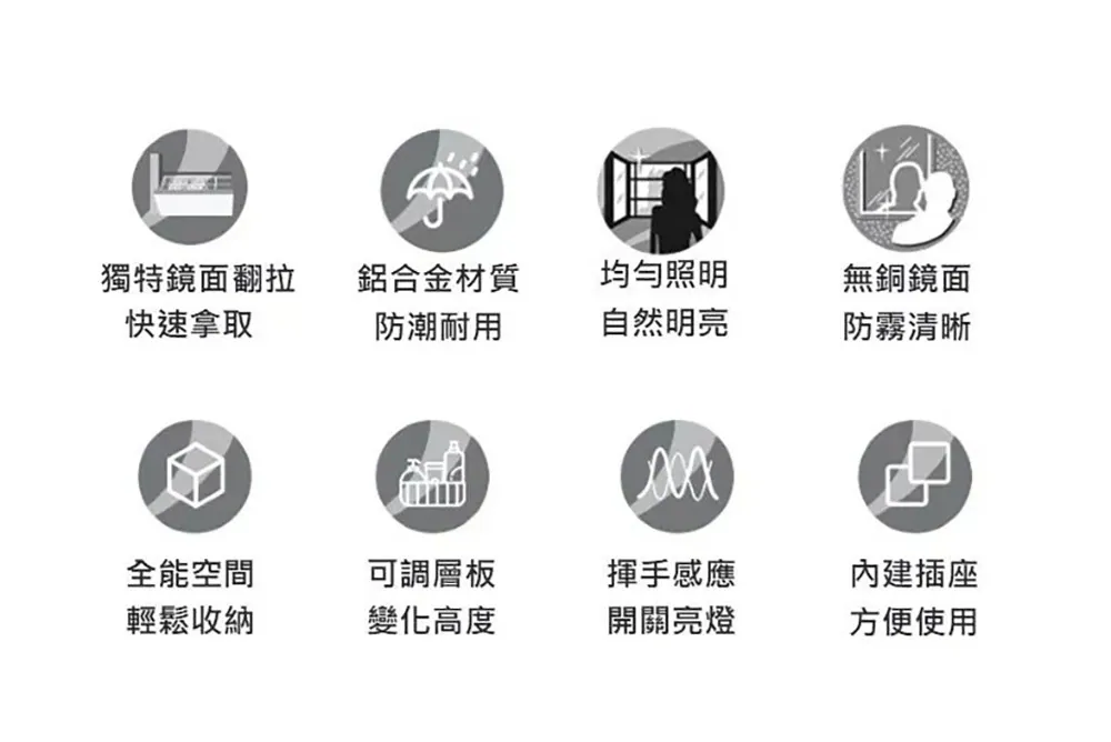 - 電熱快速除霧: 沐浴後鏡面常保清晰,梳妝打扮無需等待。
