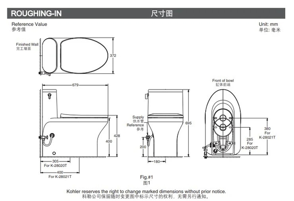 美國KOHLER Spacity 水漩風單體馬桶 非藏線款K-28020T-S-0 / 藏線款K-28020T-HC-0
