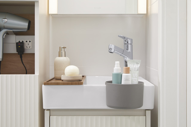 針對小空間浴室提供的Spacity浴櫃,現代簡約風格,搭配不同的櫃體以及配件,提供更好的衛浴空間體驗。