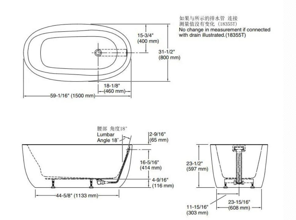 - 浴缸外型: 經典長橢圓形