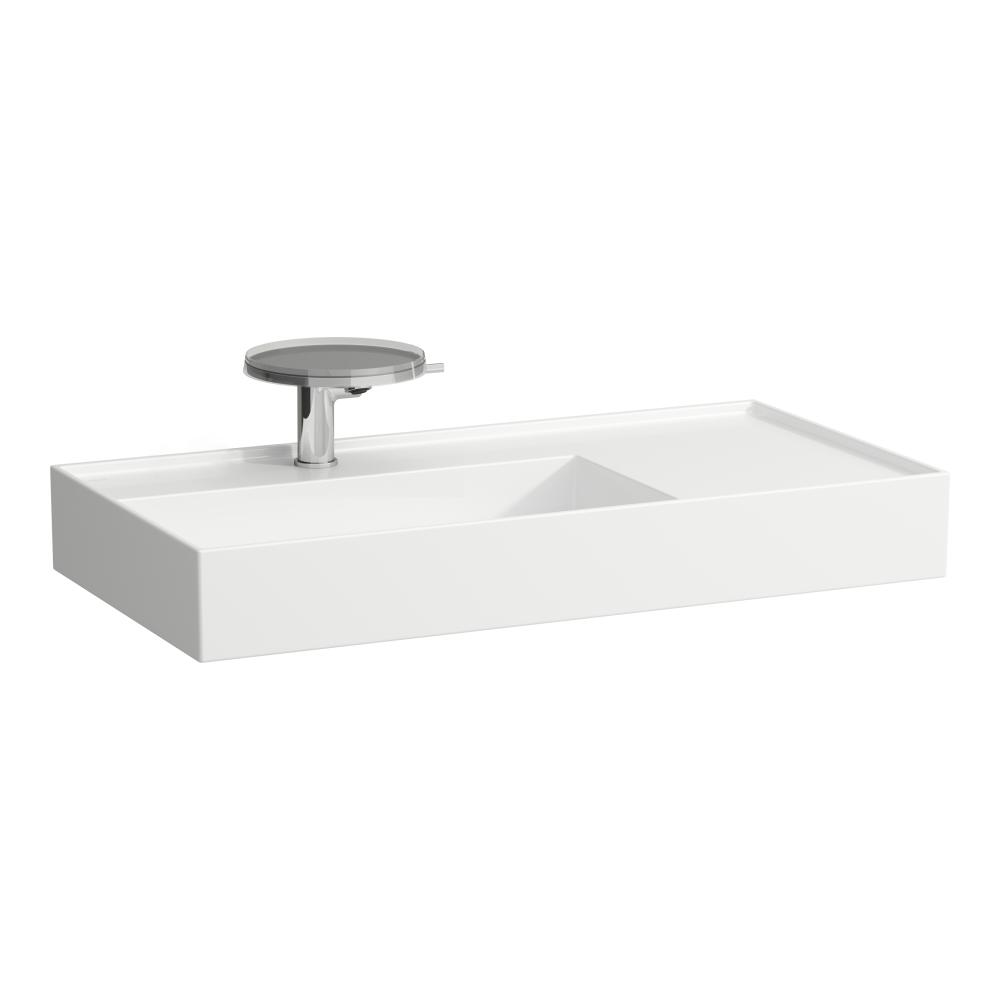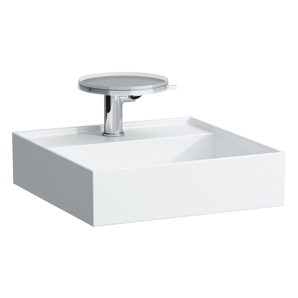 結果很明顯 – 陶瓷邊緣薄而幾乎是活潑的:活潑的方形碗和來自 Kartell by Laufen 系列的洗臉盆。