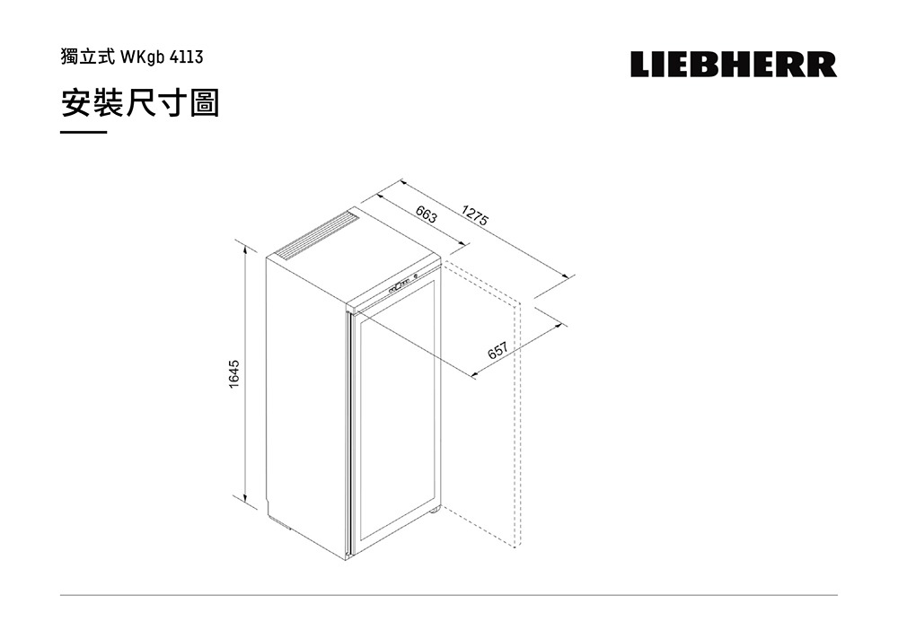 【格蘭登】德國 Liebherr 獨立式單溫酒櫃(除霧式) WKgb4113 停售