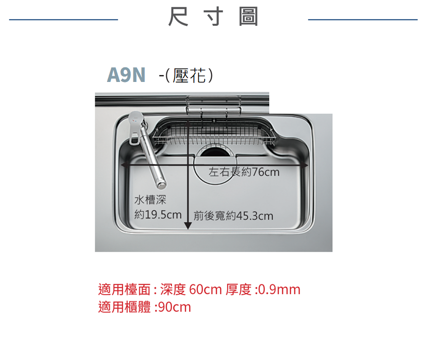 適用:檯面深度 60 公分以上/櫃體寬度 90 公分以上