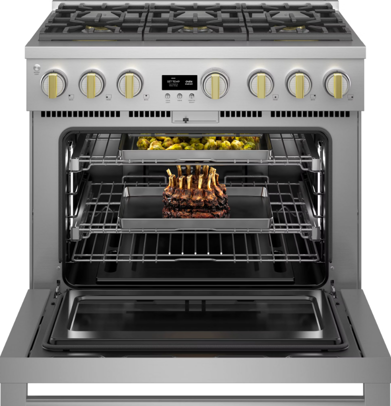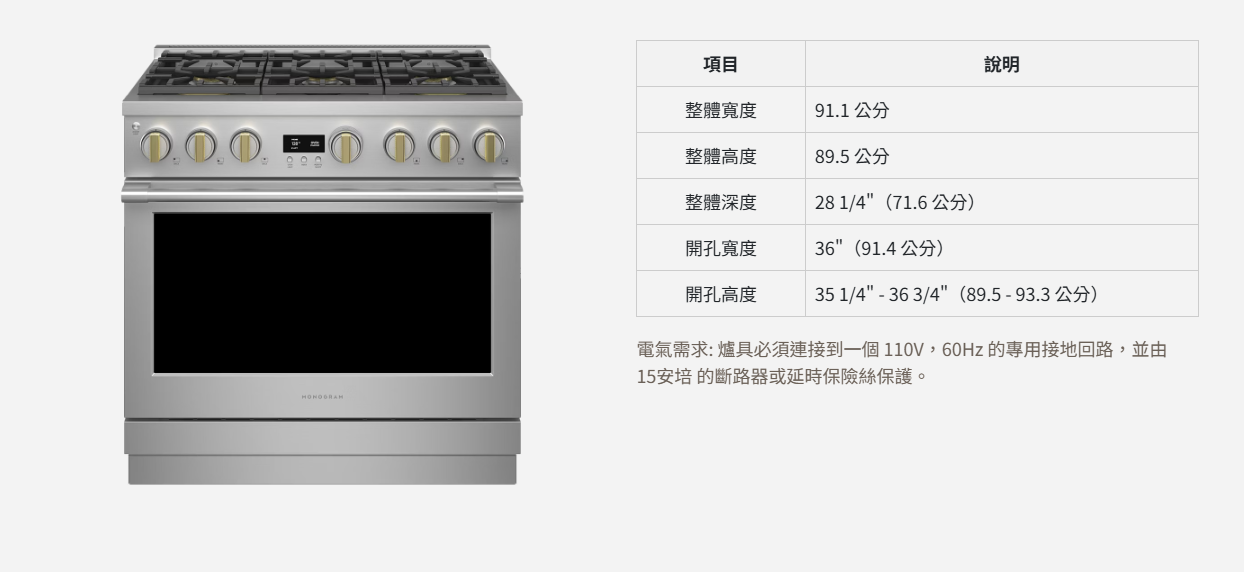 | 烤箱控制功能 | ◾ 延遲清潔選項(Delay Clean Option) 可設定延後啟動自動清潔行程的時間。◾ 發酵模式(Proof Mode) 提供理想的低溫環境,用於麵糰發酵。◾ 廚師連動功能(Chef Connect) 與其他 GE 廚電(如排油煙機)自動同步操作。 ◾ 預熱完成提示音(Audible Preheat Signal) ◾ 計時器(Timer) ◾ 蒸氣清潔(Steam Clean) ◾ 12 小時自動關閉功能(12-Hour Shut-Off Capability) ◾ 攝氏/華氏切換(C° or F° Programmable) ◾ 自動食譜轉換(Auto Recipe Conversion) ◾ 自動烤箱肉類探針(Automatic Oven Meat Probe) |