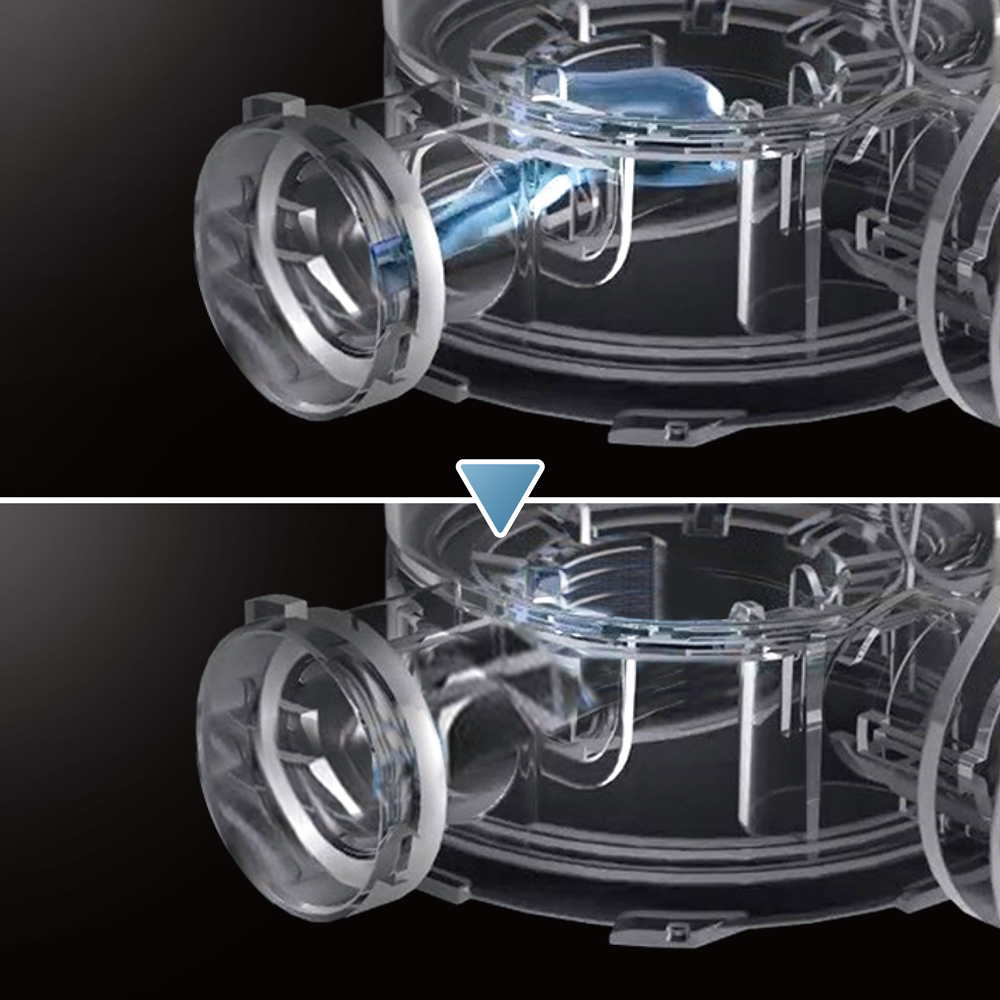 透過強勁出水洗淨濾網,保持網面潔淨,讓每回洗淨過程都是乾淨的水,達到真正乾淨。