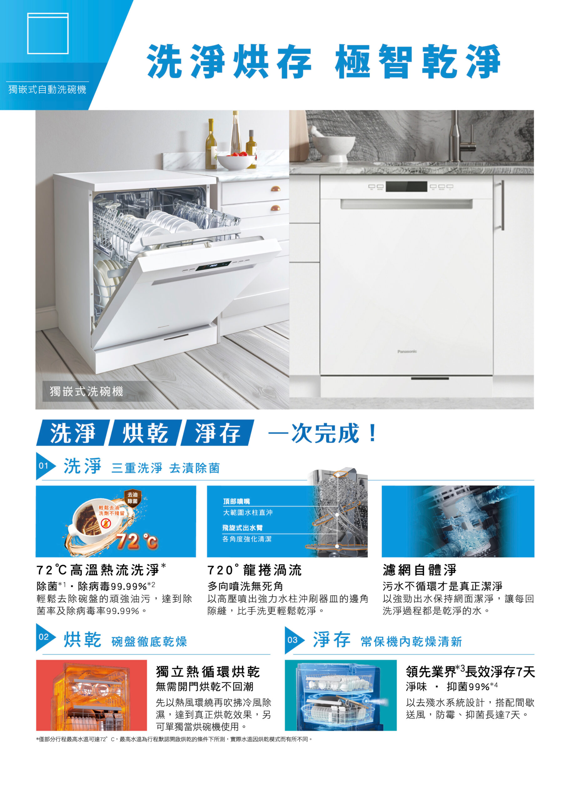 洗程智能:標準/快速/節能/強洗/少量/僅除菌/僅供乾
