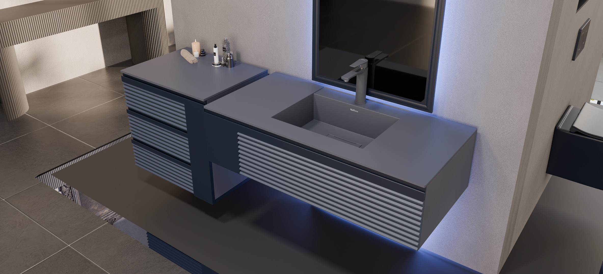 關鍵在「平坦大檯面」與「無接縫一體成型」:置物更好用、視覺更俐落,同時不靠矽利康補收邊,降低發霉黑邊與藏污風險,維護更直覺。