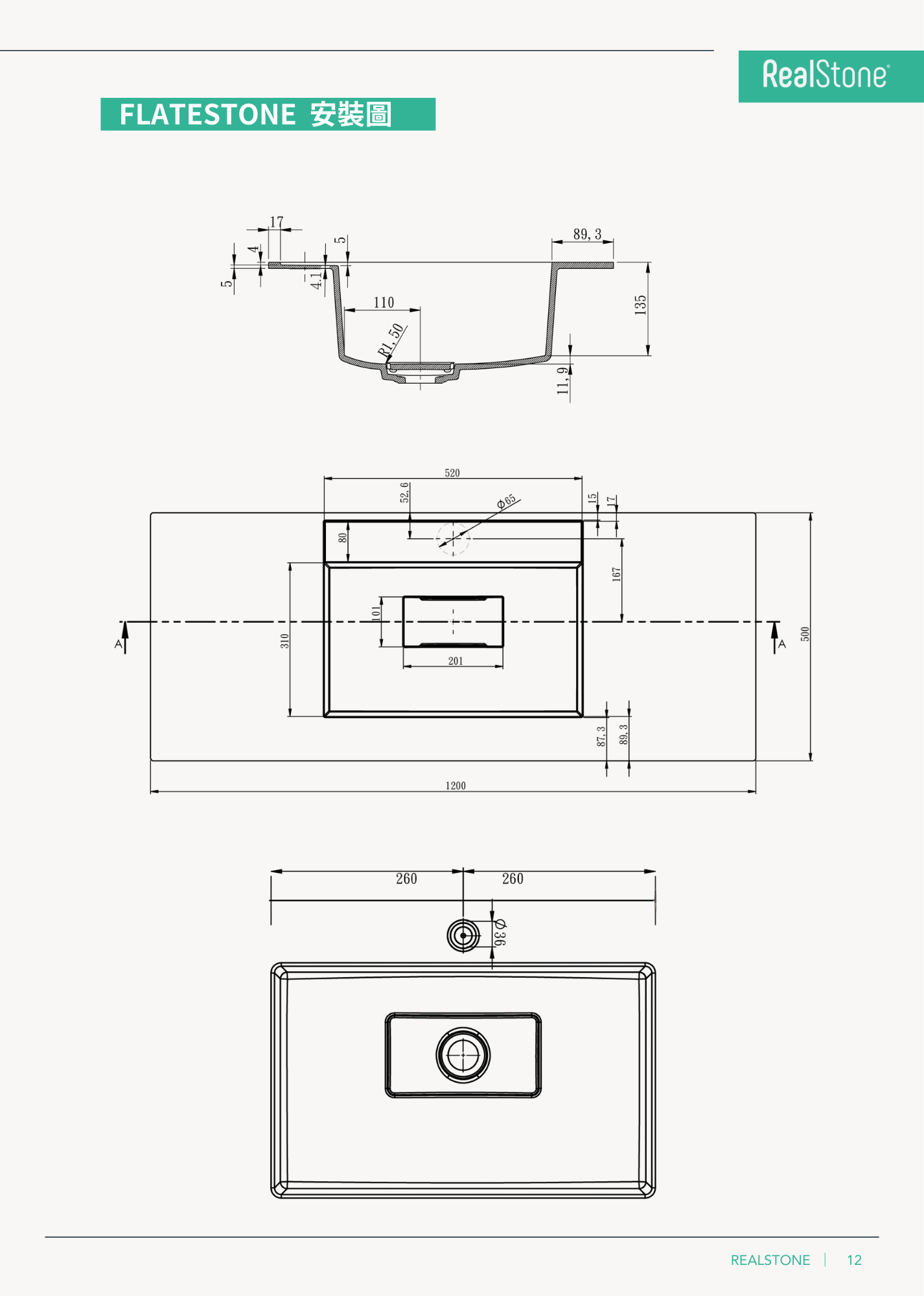 【格蘭登】土耳其 RealStone FLATSTONE 花崗岩無界石檯盆/洗手槽 5尺寸*11色 70cm