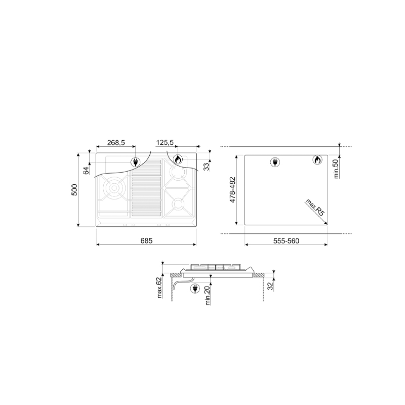 尺寸:68.5 x 50 x 3.2 cm 顏色:奶油色 材質:不鏽鋼 附件:中式炒鍋架 x1 電壓:110V / 60Hz 電功率:0.2W 熱效率:43% 熱功率:左爐心 4kW 產 地:義大利