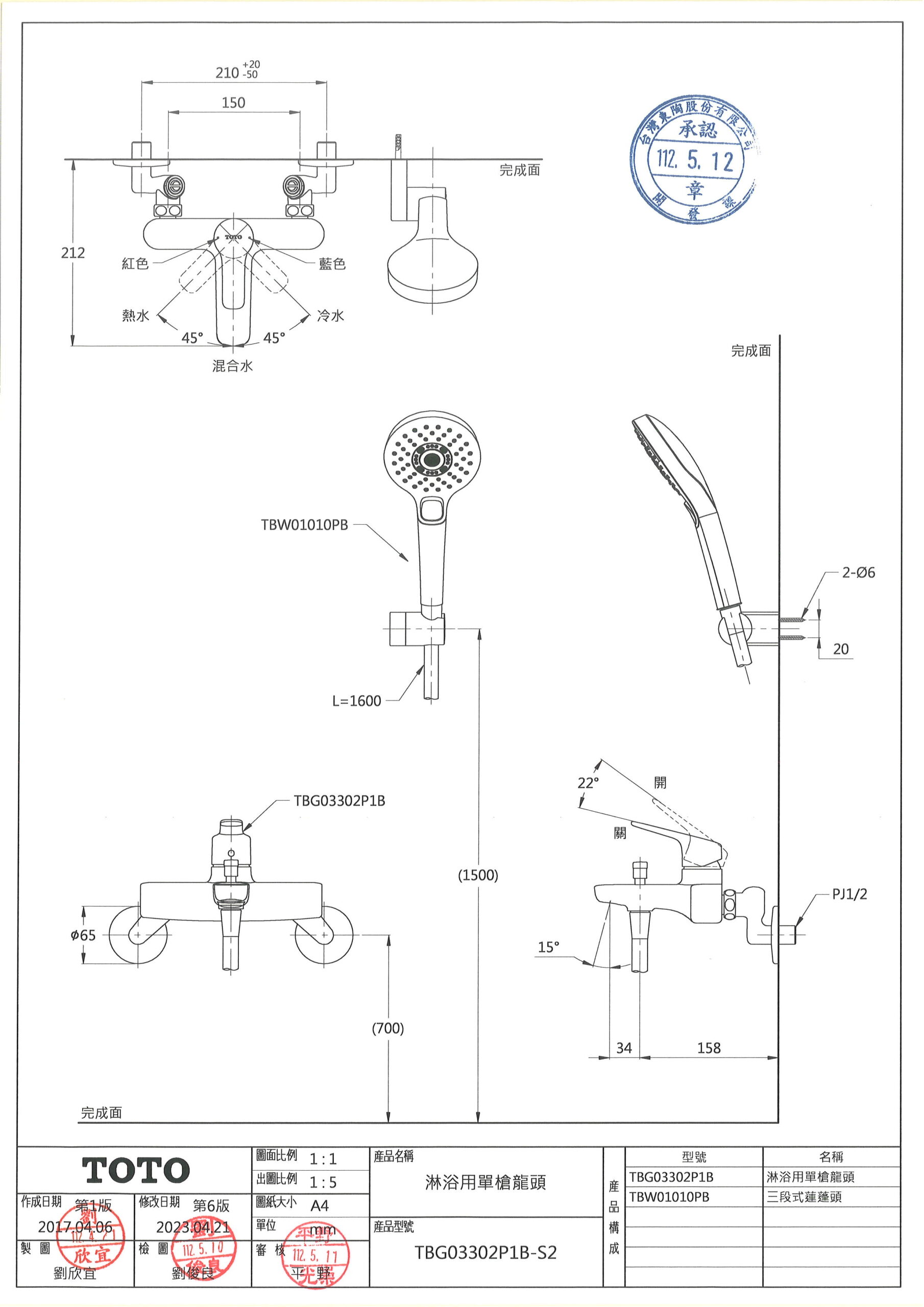 【格蘭登】日本 TOTO 淋浴用單槍龍頭 TBG03302P1B-S2