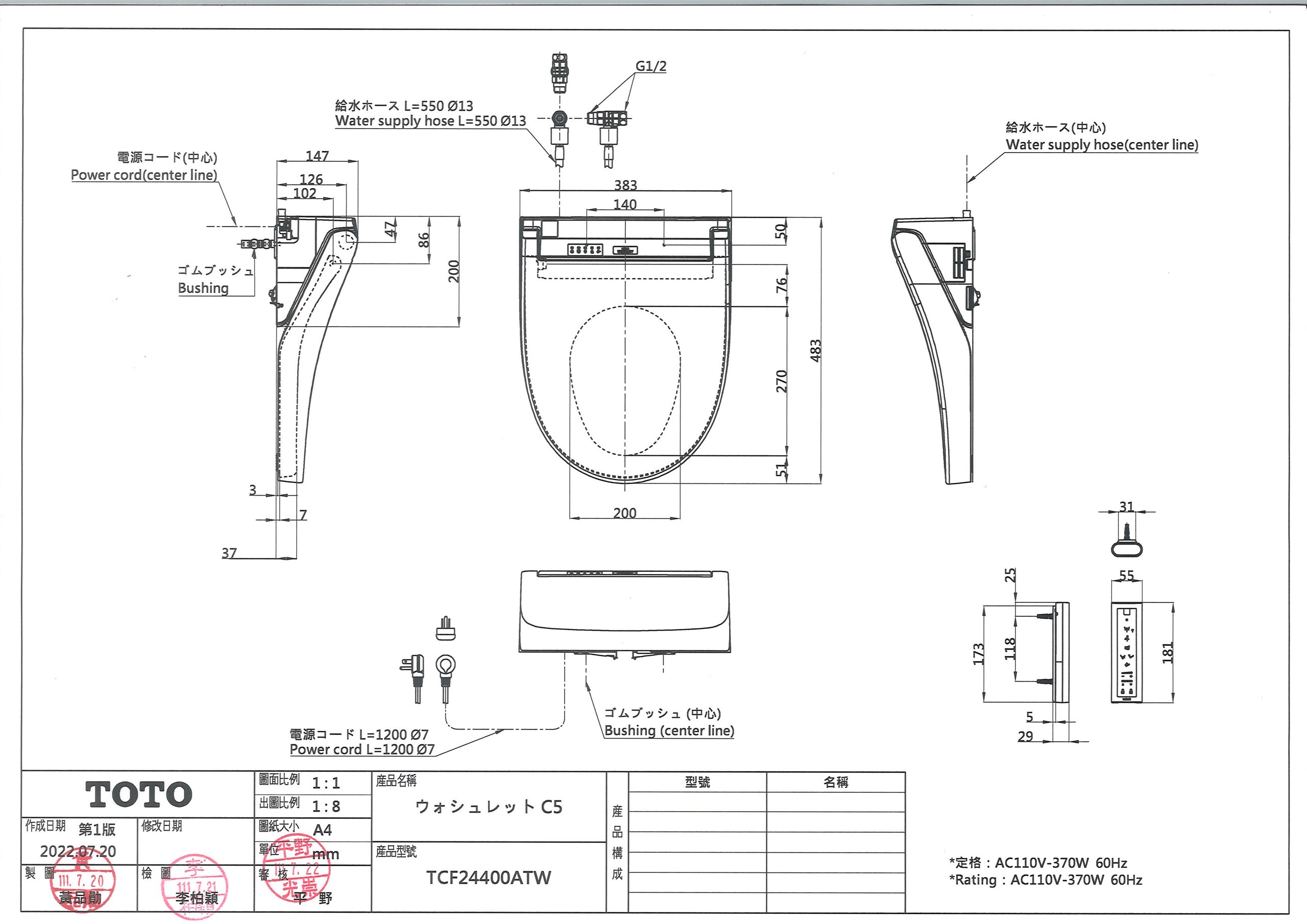 - 電 壓 110V