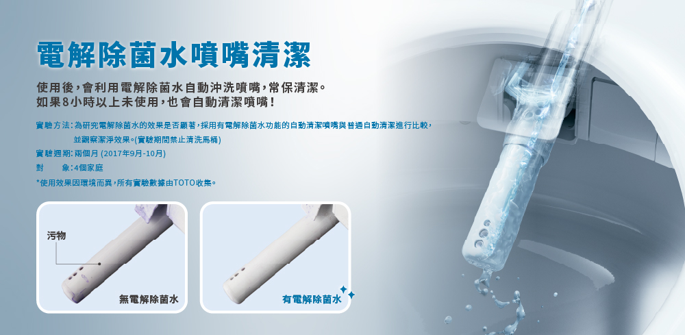 - 電解除菌水清潔,噴嘴使用更放心