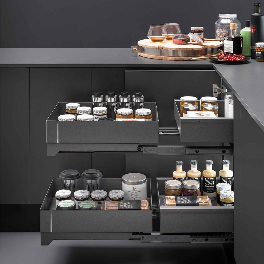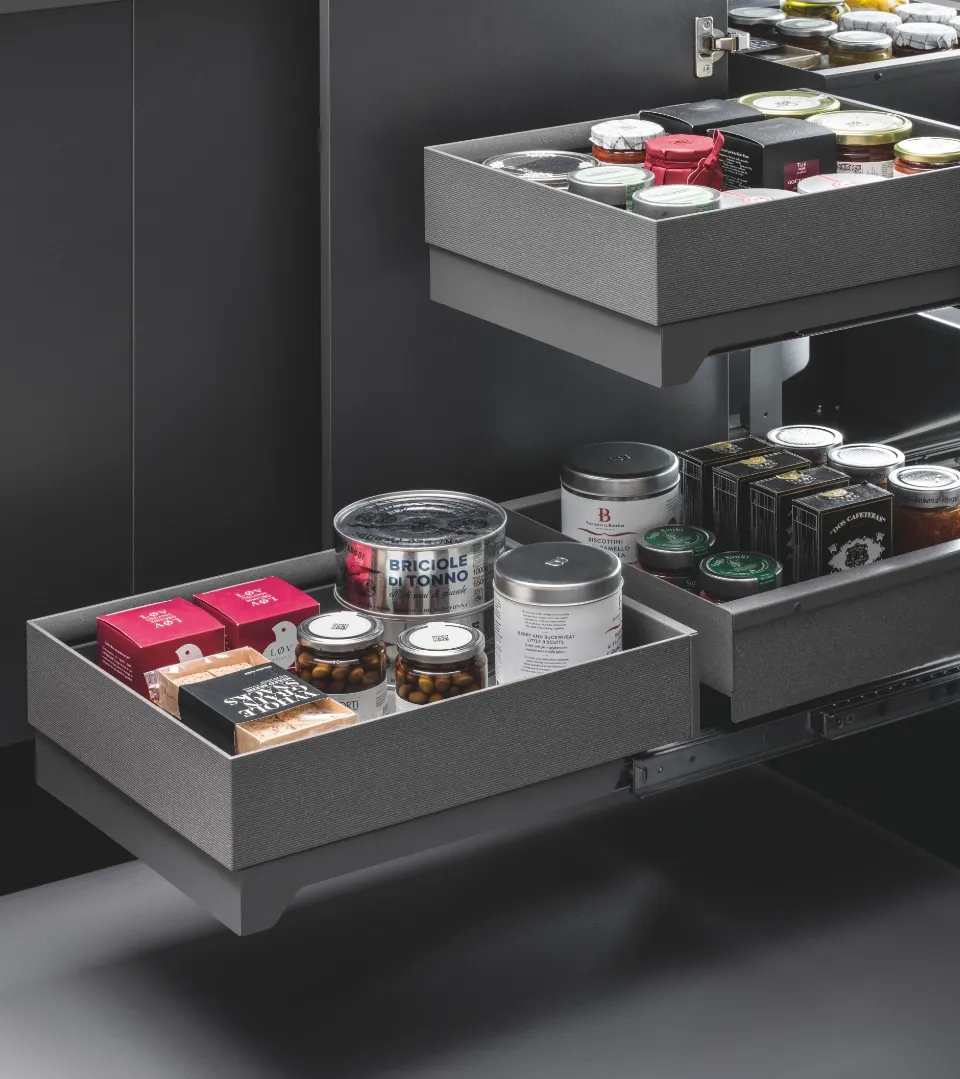 ■ 每層盤籃都能全展出來,取得物品更加容易,盤籃收回去皆有緩衝功能